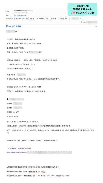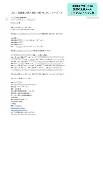 土日にもかかわらず、見積提示のレスポンスが早かった印象が残っています。初めての会員権購入でしたが保証制度の事前提示や、依頼書面が電子化されていて安心できる丁寧な対応でした。