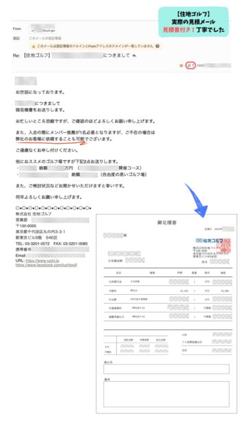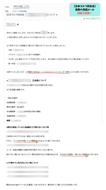 ややテンプレ化した営業感もありましたが、希望コース+希望エリアに提携コースが多いゴルフ場を詳細資料とともに提案をいただきました。