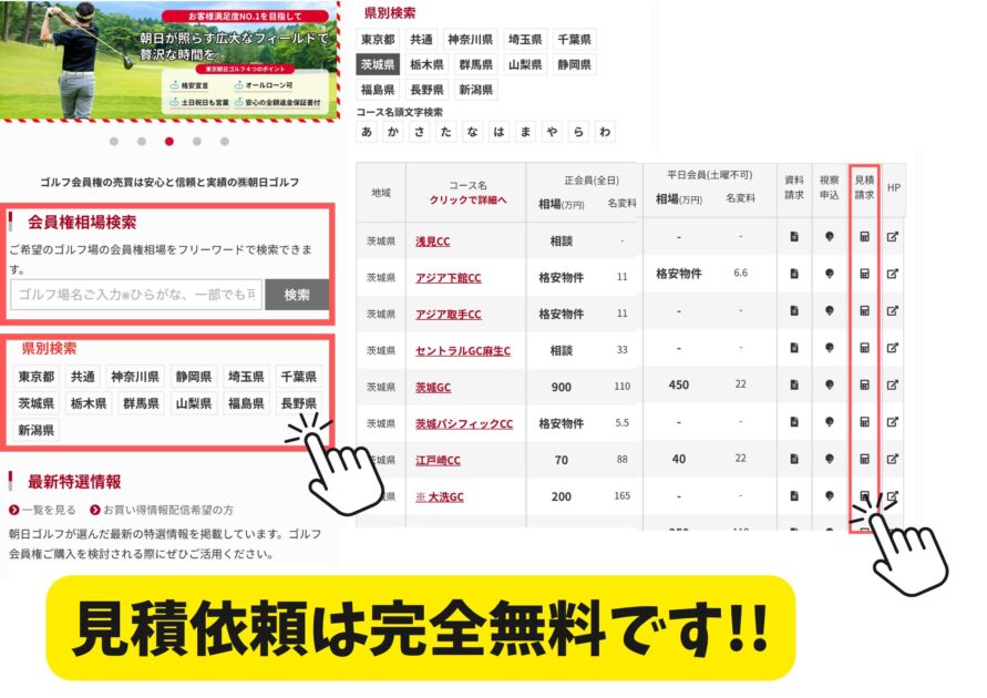 希少な会員権も揃っているので、まずは無料見積もりがおすすめ。