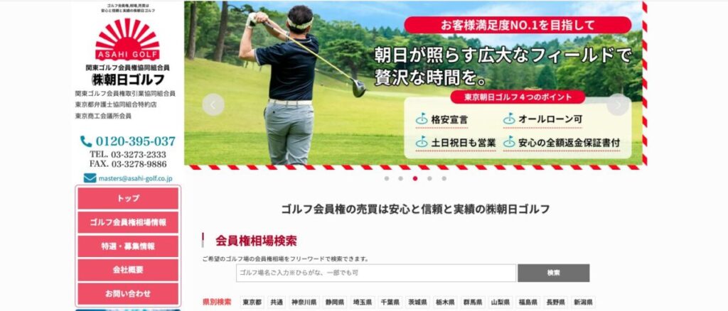 朝日ゴルフは、「どこよりも安く、どこよりも安心に」をモットーに顧客満足度No.1を目指す、老舗会員権業者です。