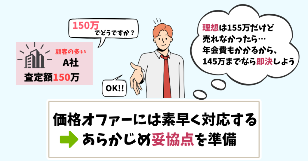 価格オファーがあった際に対応する基準を想定していると、上手に売却できる可能性が高まりますよ。