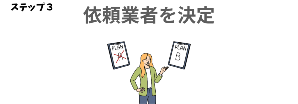 ステップ3で提出された見積もり内容を比較検討し、1番信頼できる業者を選びましょう。