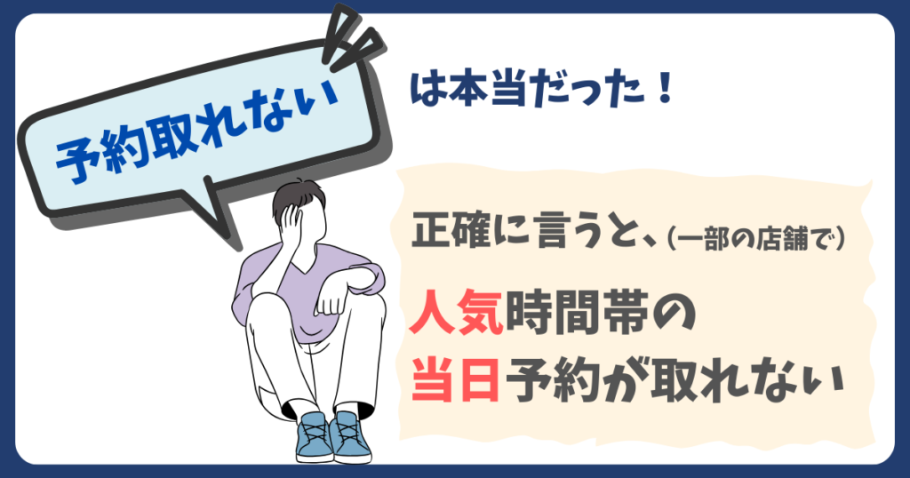 ですが正しくは、一部店舗で「人気時間帯の当日予約」が取れないというものでした。
