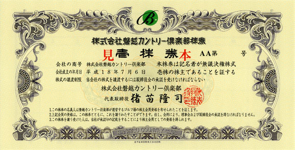 ▼株主会員制ゴルフ会員権の証書例
