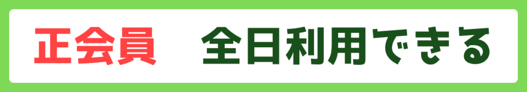 正会員は、クラブの定休日を除くすべての日にメンバーサービスを受けられる会員権です。