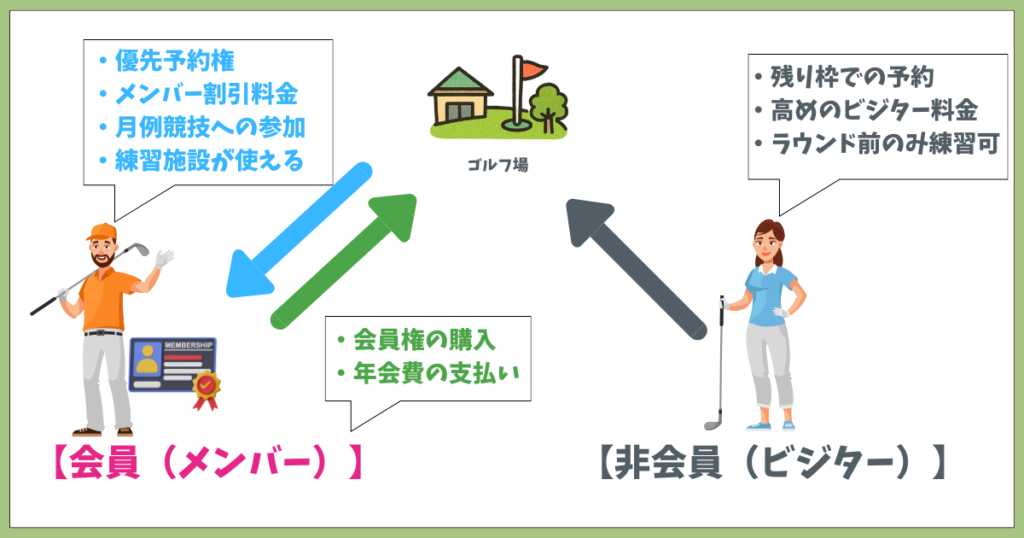 目的に合わせて選べば、プレー費用の節約やゴルフ仲間との出会い、練習環境の充実など、ビジターでは得られないメリットを得られます。