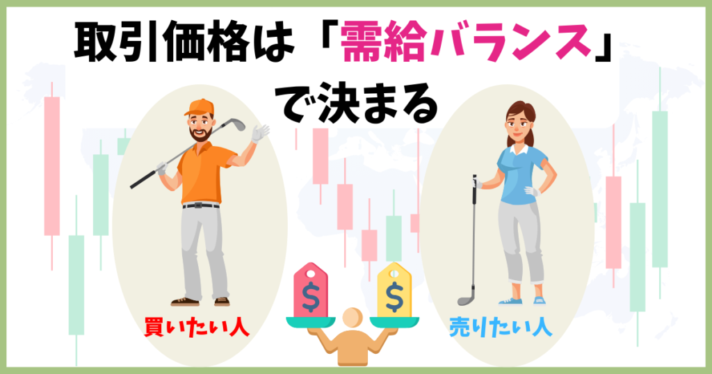 反対に安くなると買いたい人が増えるので取引価格は上がる傾向があります。